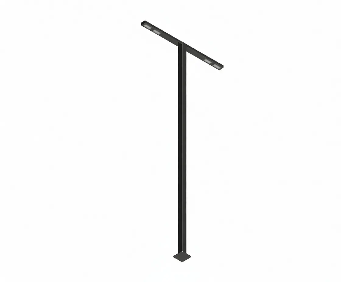 Светодиодная система Столица 5 метров 2х55 имеет Т-образную форму и изготавливается из стальных профильных труб сечением 120х120 мм и 120х60 мм. В качестве осветительных элементов используются 4 светодиодные матрицы общей мощностью 105 Вт на основе немецких светодиодов Osram, а источник питания имеет защиту от пыли и влаги IP67 и защиту от напряжения 380 Вольт.